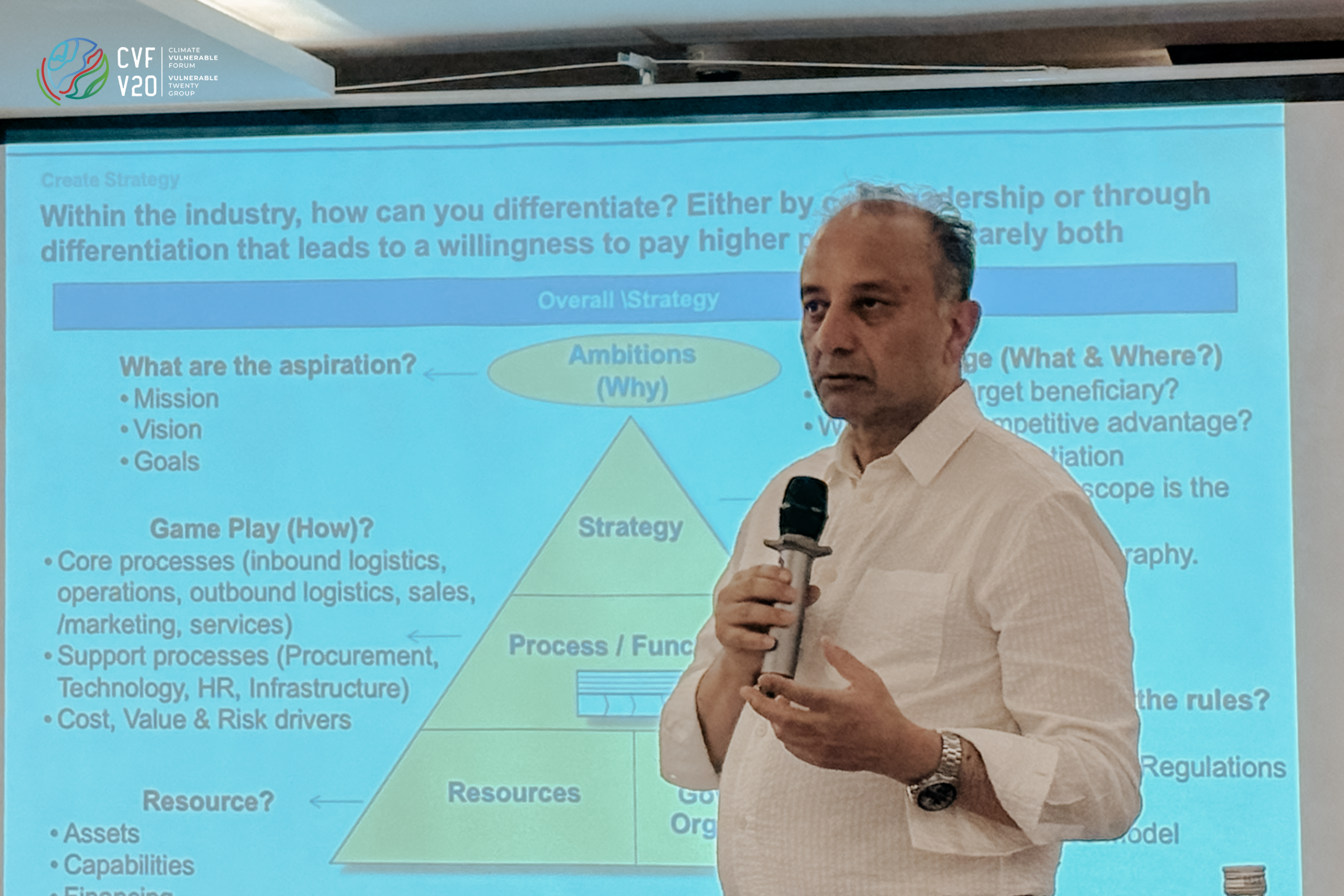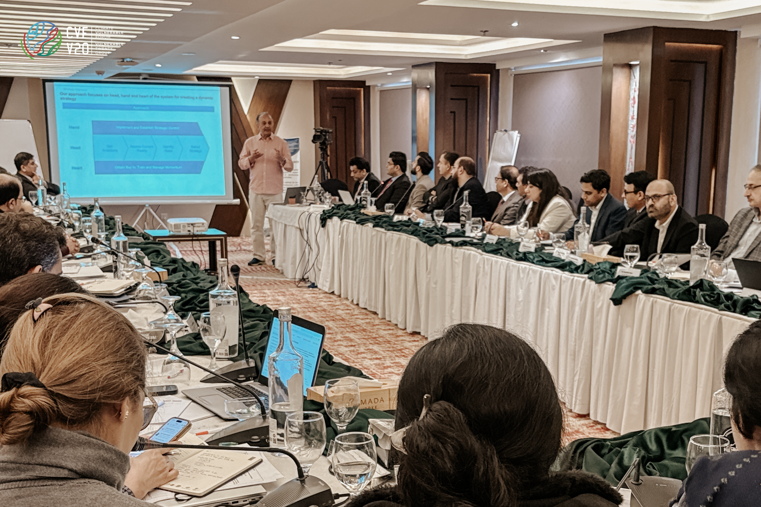 The second day shifted from strategy to operational planning. Proceedings began with a stocktake of climate finance in Pakistan, providing participants with an overview of current funding flows, gaps, and opportunities. This exercise helped ground subsequent discussions and provided context for refining national priorities. Hamza Haroon, CVF-V20 Secretariat’s Regional Director for West and South Asia, pointed to the growing importance of having a unified strategy on climate by adopting a Country Platform approach to better align public and private capital and support long-term climate investments.